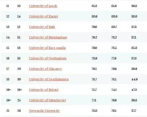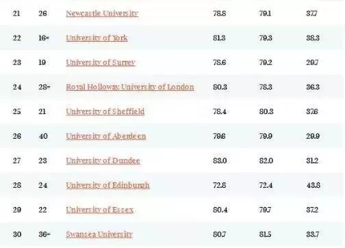 约克大学、萨利大学则是意外跌出前20,分别位居22\23。