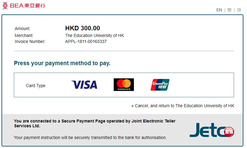 申请费共HK$300,可选择VISA或银联支付。