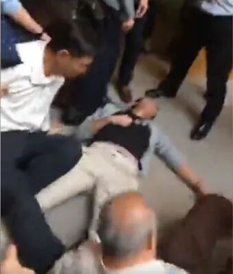 欲离开时却被学生上前以身体阻挠,期间一度引发推撞。林颖恒倒地后再撞到沈岐平,现场保安亦遭波及受伤。