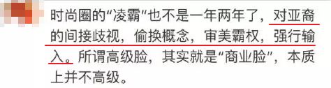 而时尚品牌屡次发布不符合中国人主流审美的模特照片,是迎合西方人一直以来对中国人“眯眯眼、塌鼻梁”的刻板印象,这是一种歧视。