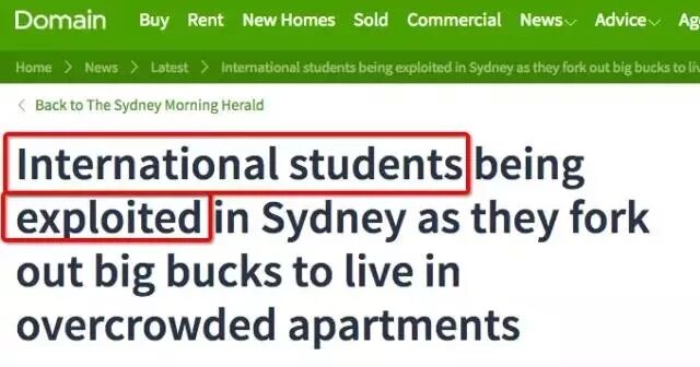 2016年,澳大利亚权威地产网站Domain曾发布一则题为《悉尼国际留学生被剥削,支付大笔钱却只能住在拥挤的公寓里》的新闻。