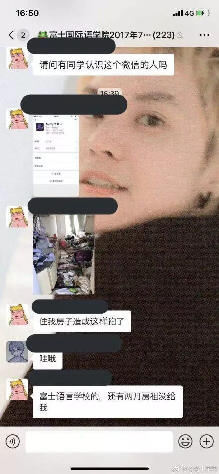 事后,房东在富士国际语学院的中国学生微信群内求助,有同学指出TS已因为出席率过低,在2月就已经被学校开除返回中国。
