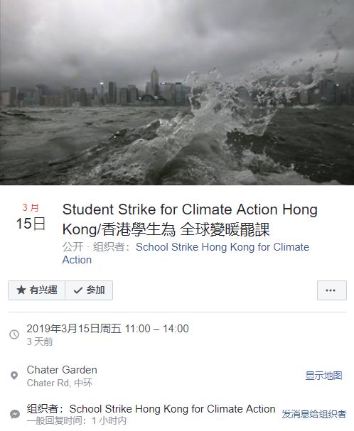 上周五(3月15日),在香港就有这样一场以气候为主题的游行活动,有逾百名学生罢课参与。