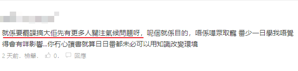 甚至还有人嘲讽学生们搭车去中环会加剧碳排放: