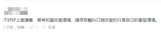 而香港女生Afra也直接回怼香港教育局:“对我来说,哪里都能学习。我罢课走出来是学习环保议题,以及什么是政治、权力及游行。”