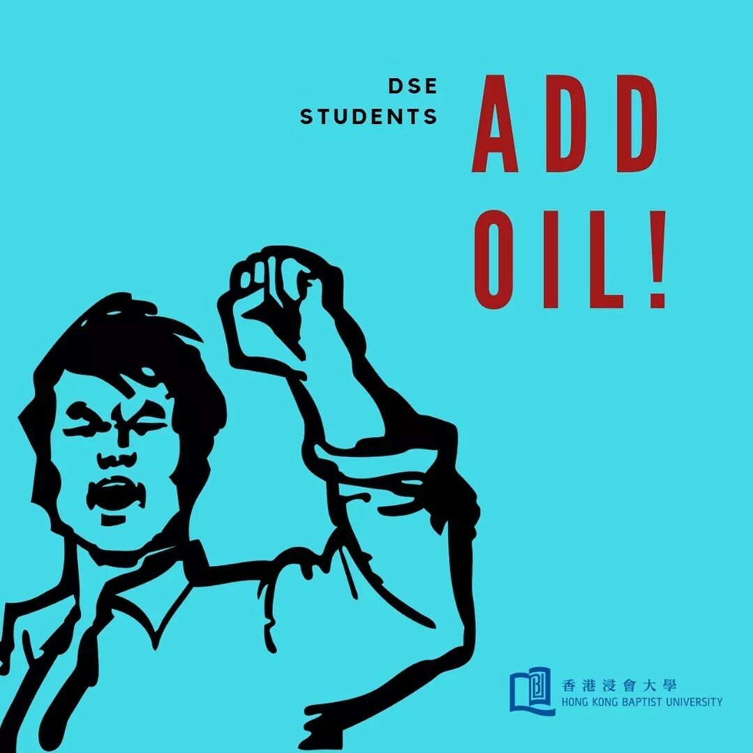 就连香港浸会大学在其官方媒体账号上为香港考生加油,也是用了“ADD OIL”。