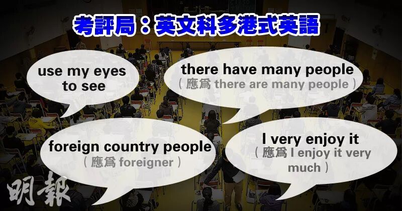 可能有些小伙伴不熟悉港式英语,之前香港考评局(专责安排及统筹考试的机构,传说中的“出题老师”)就曾批评香港考生“港式英语”情况严重。